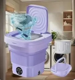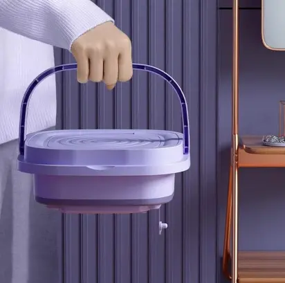 Mini lavadora plegable de gran potencia, ideal para lavar ropa de bebé, calcetines, toallas pequeñas y más. 2 programa de lavado y función de centrifugado.