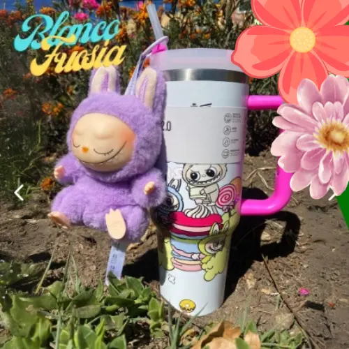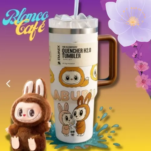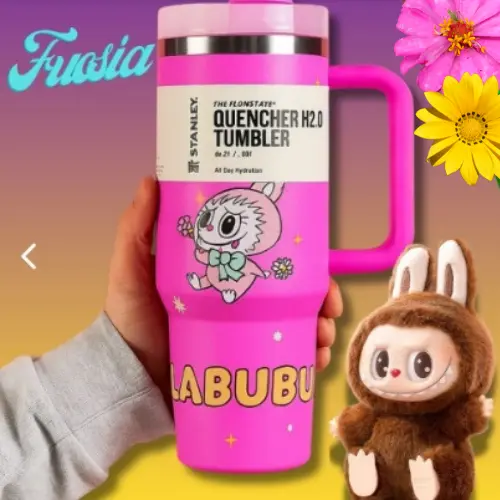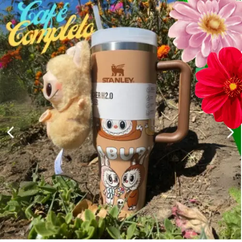 Diseño Exclusivo con Labubu: Decorado con el adorable personaje Labubu, este termo combina estilo kawaii con la durabilidad de Stanley, perfecto para coleccionistas y amantes de lo único.